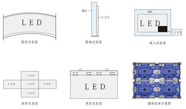 博邦诚小间距LED显示屏安装方式多样,可以根据现场以及使用方的特殊化需求进行设计,常用的安装方式为: